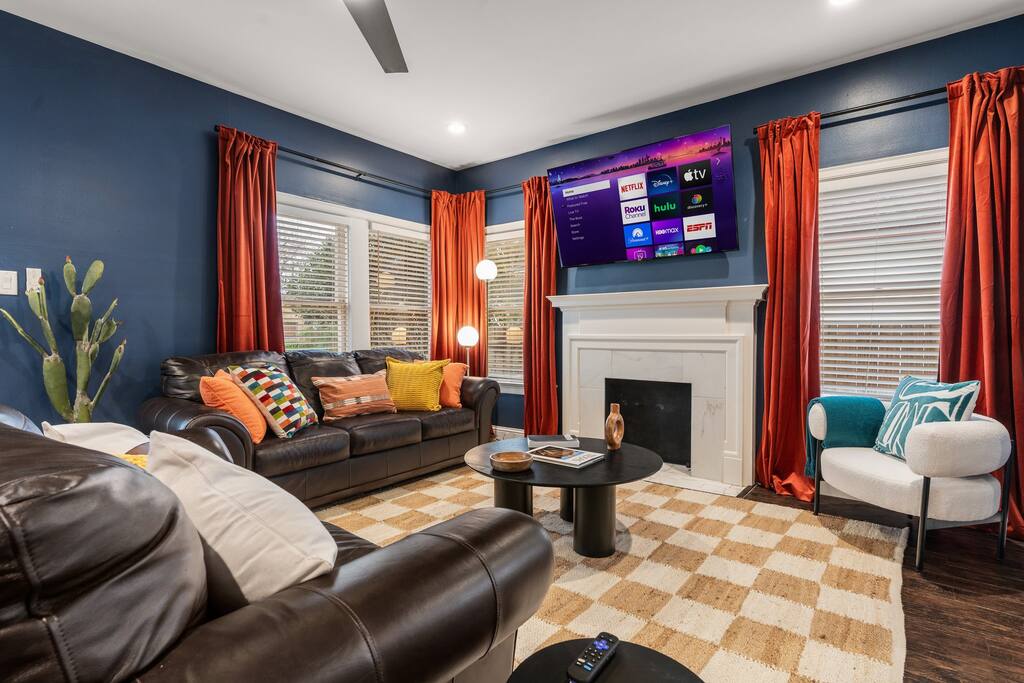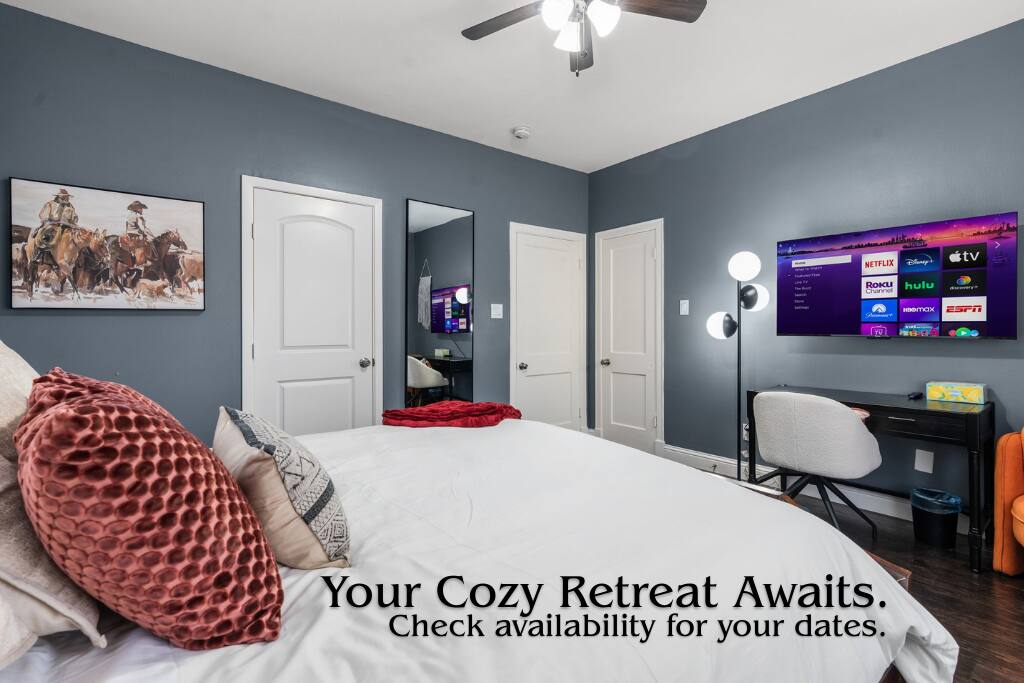 The Sagebrush Retreatđ” Unwind in this 3-bedroom Houston home featuring a cozy breakfast nook, board games, and smart TVs, just minutes from downtown, the Texas Medical Center, and museums. What Youâll Love: â1 King Bed â4 Full Beds âComfy Patio â3 Smart TVs âOutdoor Games âHigh-speed Wi-Fi â1 Queen Sofa Pullout âOutdoor Dining Area âOutdoor Gas Fire Pit âCozy Breakfast Nook âKeurig Coffee Machine âIn-unit washer and dryer âBoard and Family Games âOutdoor gas barbecue grill