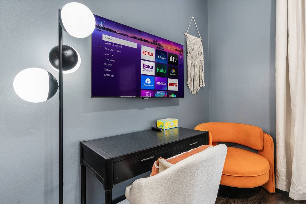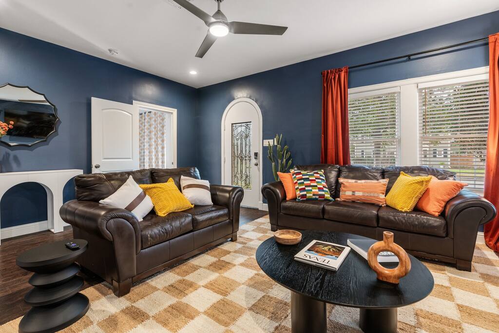 The Sagebrush Retreatđ” Unwind in this 3-bedroom Houston home featuring a cozy breakfast nook, board games, and smart TVs, just minutes from downtown, the Texas Medical Center, and museums. What Youâll Love: â1 King Bed â4 Full Beds âComfy Patio â3 Smart TVs âOutdoor Games âHigh-speed Wi-Fi â1 Queen Sofa Pullout âOutdoor Dining Area âOutdoor Gas Fire Pit âCozy Breakfast Nook âKeurig Coffee Machine âIn-unit washer and dryer âBoard and Family Games âOutdoor gas barbecue grill